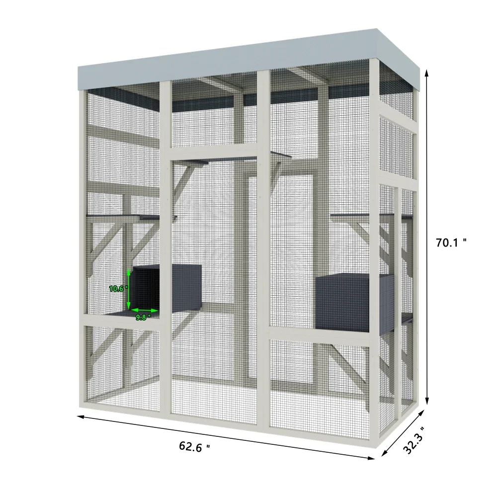 62.6″ Gray Wooden Catio Outdoor Pet Enclosure with Waterproof Top